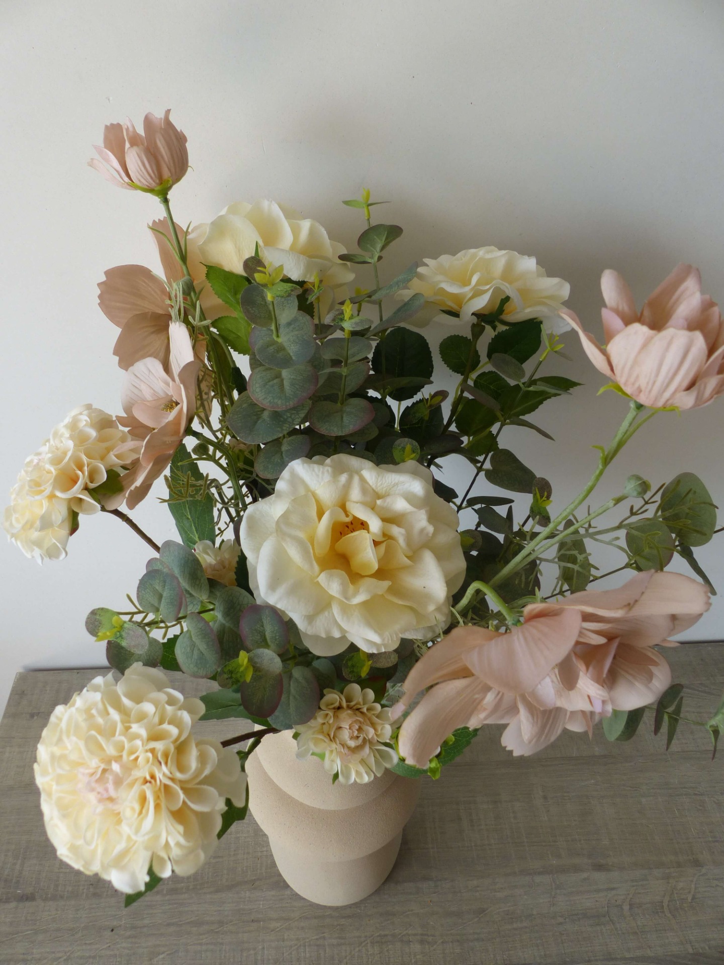 3x eucalyptus 2x dahlia peach2x coreopsis oud roze 3x rozen geel