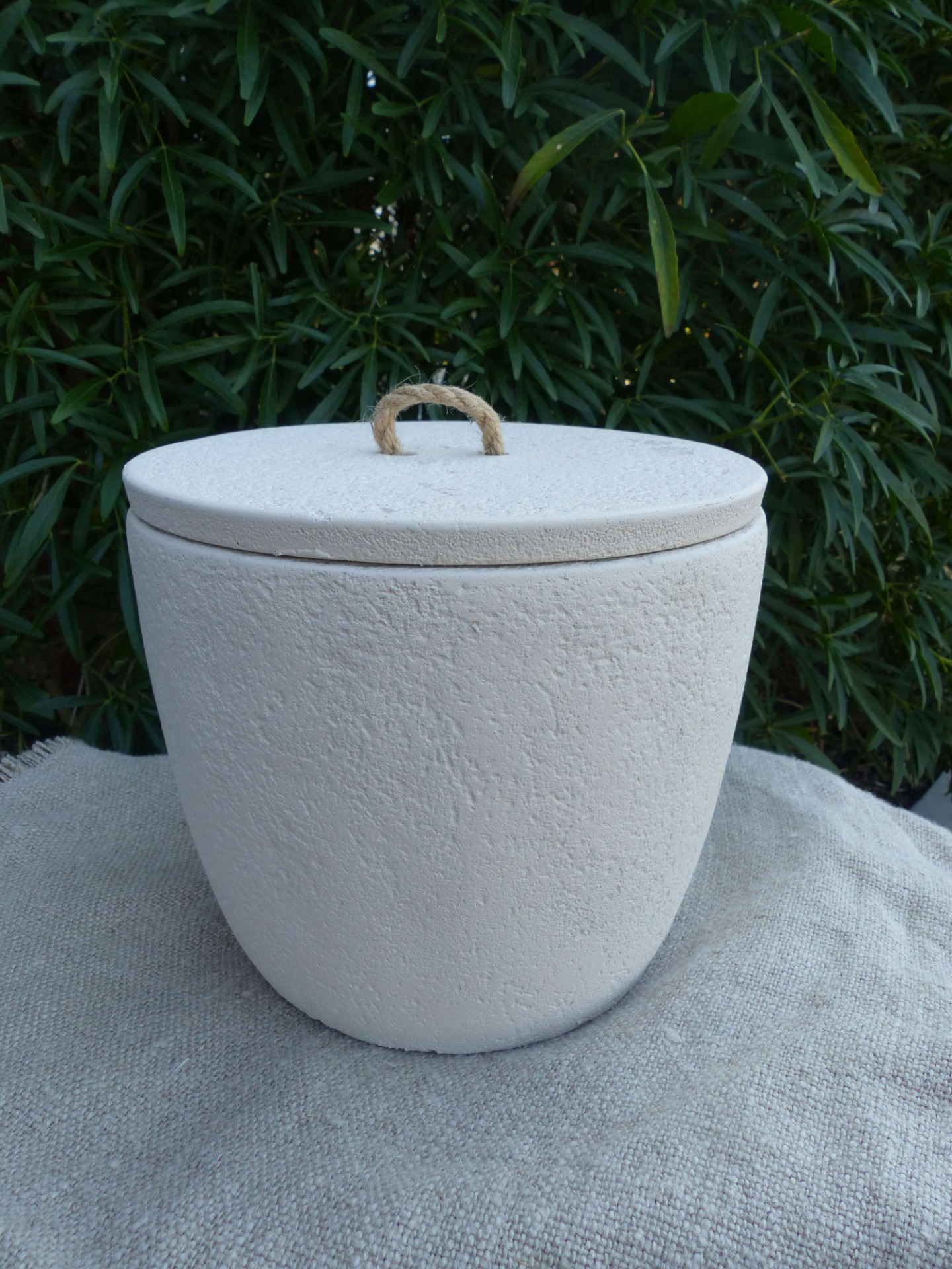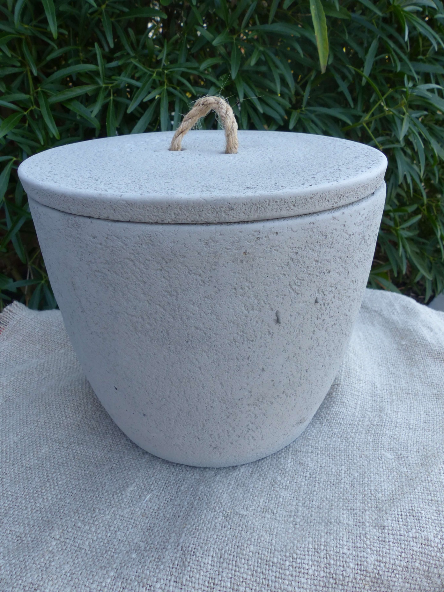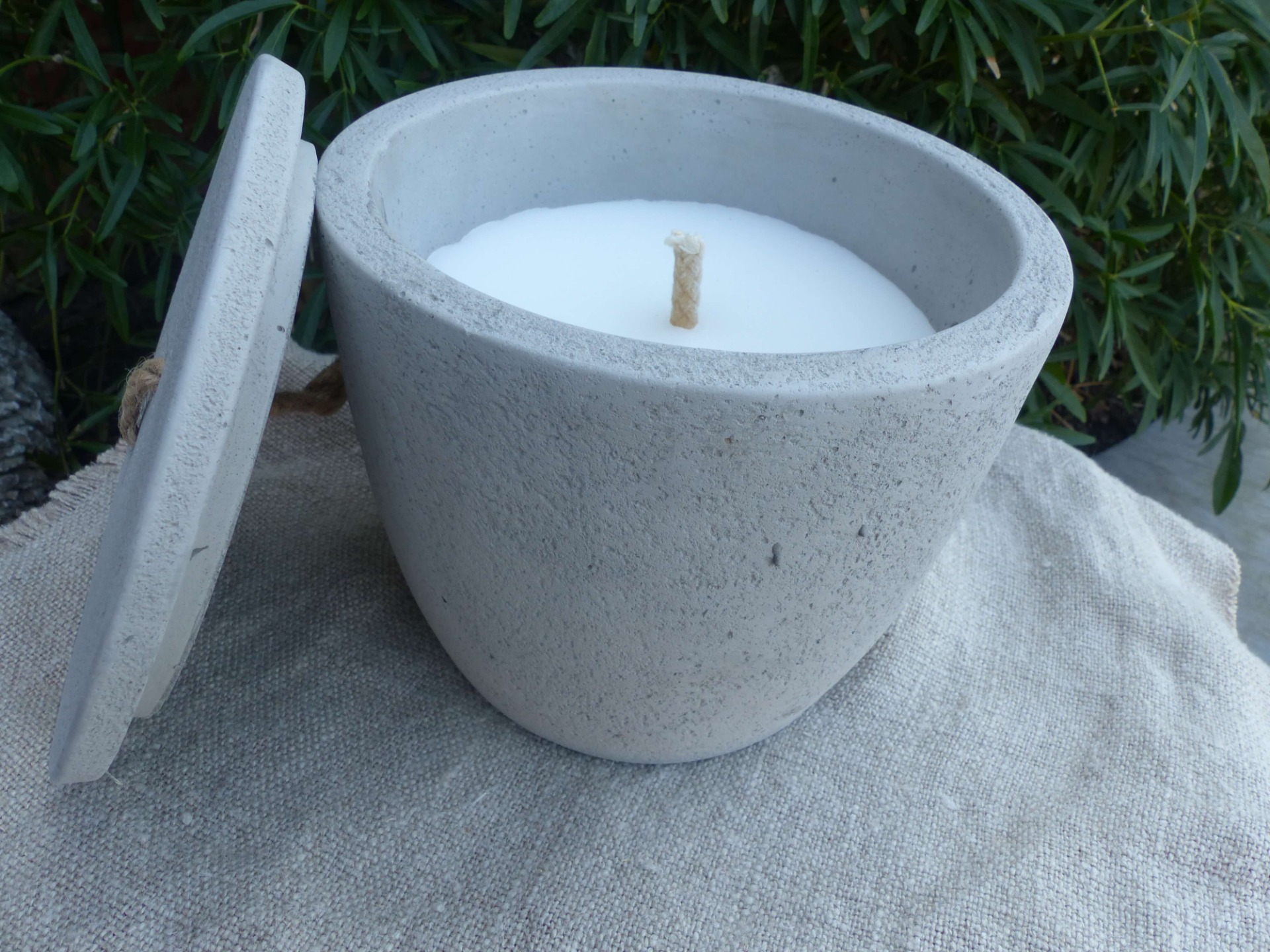Gemaakt van beton waardoor een natuurlijke en sfeervolle toevoeging voor op je terras wordt gecreëerd. De lont van de kaars is gemaakt om buiten te branden. Keuze tussen een witte of grijze pot.