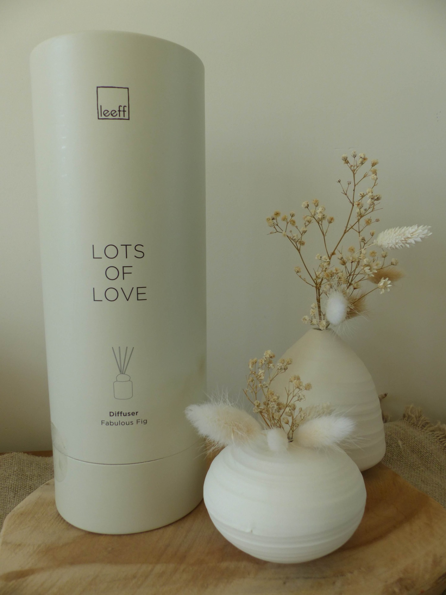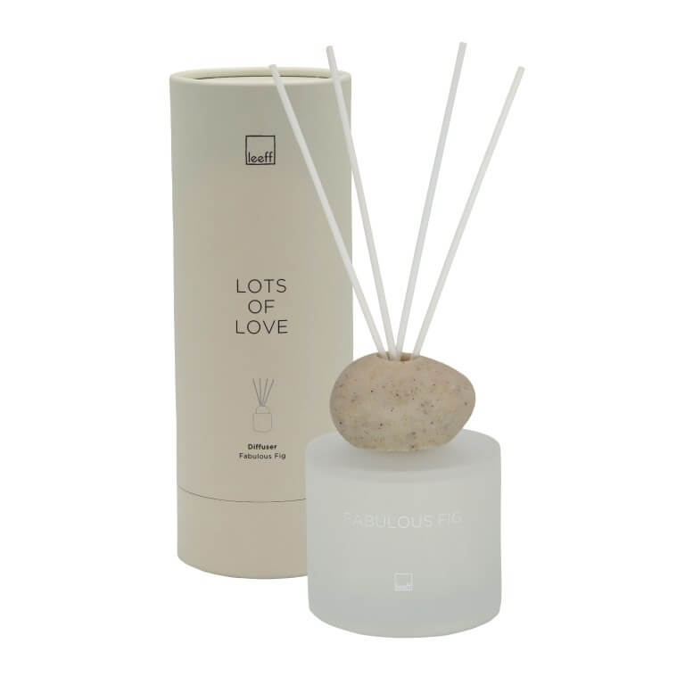 Stijlvolle geurdiffuser met stenen dop. Geniet van de zachte, luxe geur van Fabulous Fig. Wordt geleverd in een mooie cadeauverpakking.