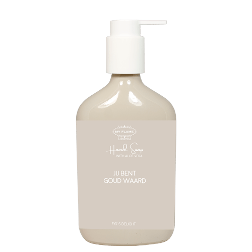 Vloeibare handzeep in een glazen fles. Deze vegan handzeep is heerlijk zacht voor je handen door de toevoeging van aloë vera.