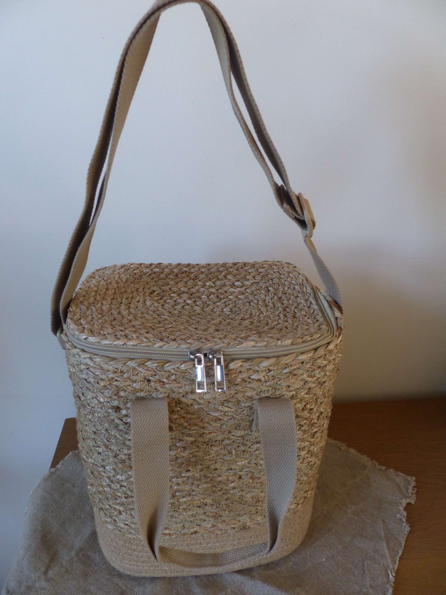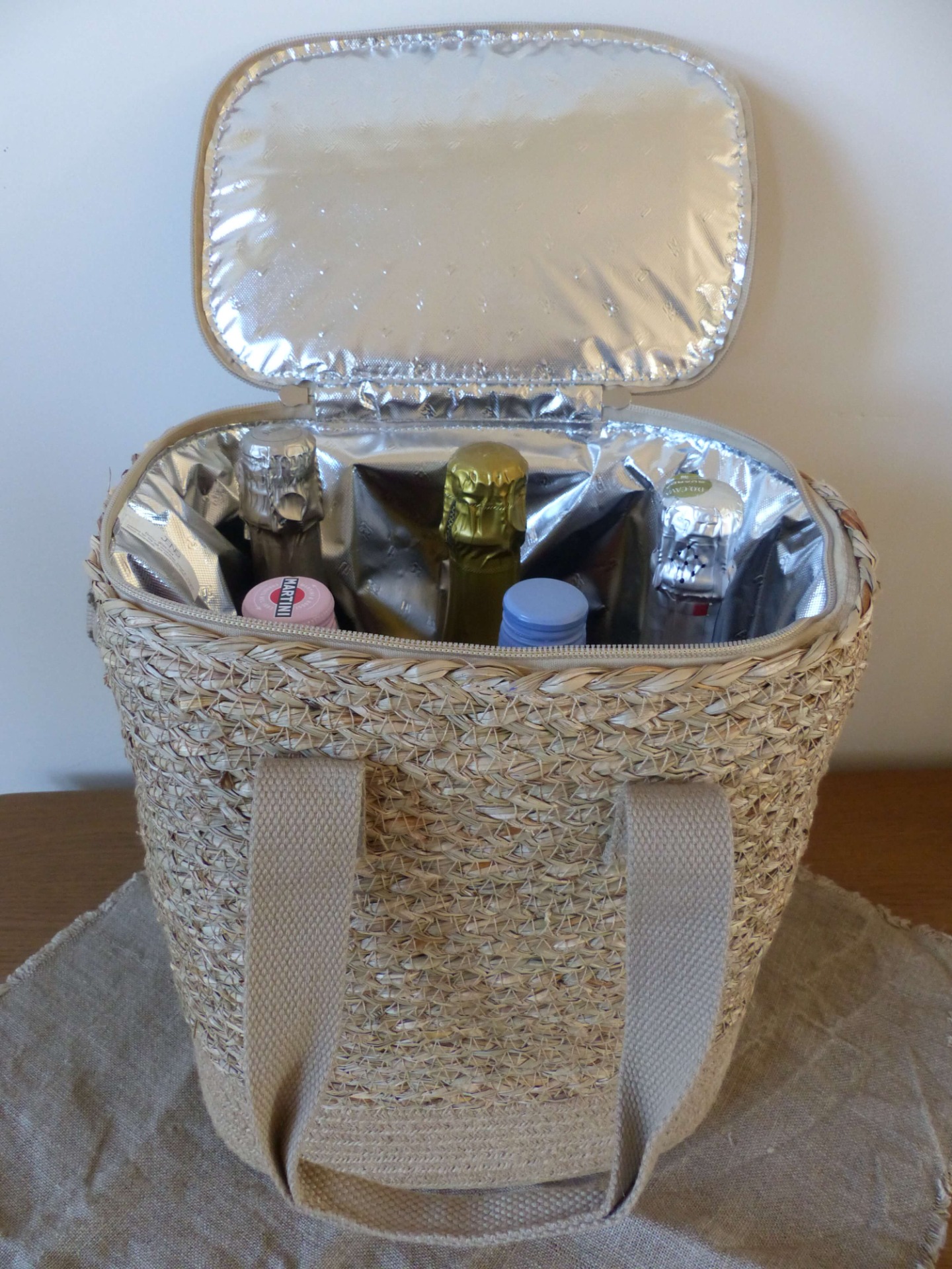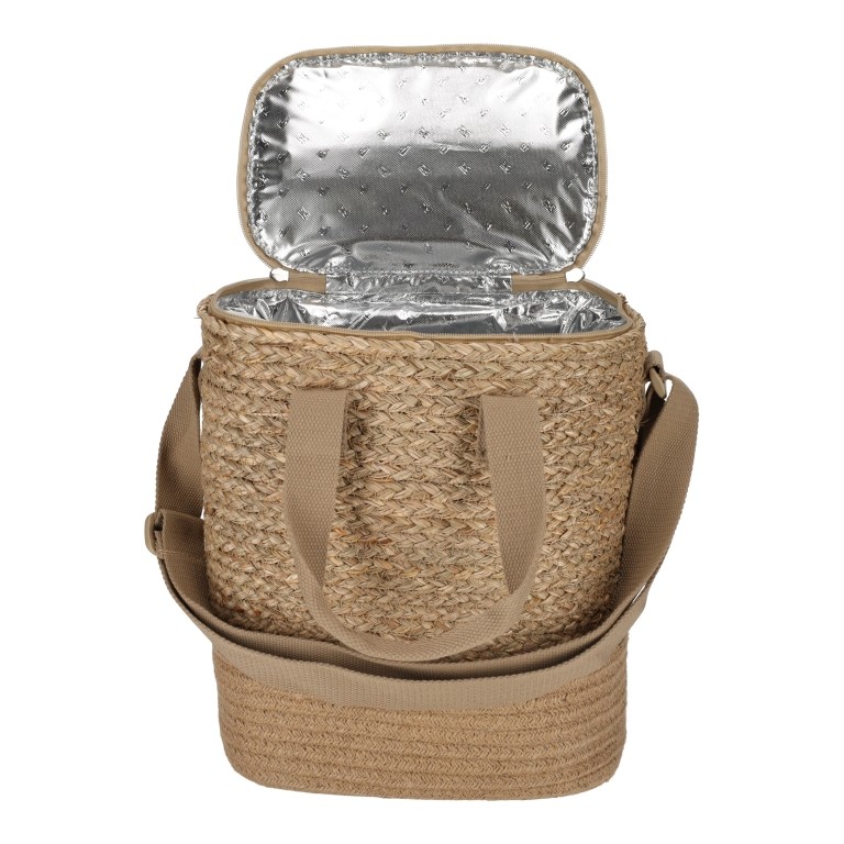 Deze hippe koeltas van duurzaam zeegras mag deze zomer echt niet ontbreken. De binnenzijde is gevoerd met isolerend koelfolie, zodat drankjes en snacks langer fris blijven. De koeltas heeft een verstelbare schouderriem en stevige handgrepen zodat de tas makkelijk mee te nemen is. Het voorvakje met rits zorgt voor extra ruimte voor kleine spullen. Deze topper is voor iedereen die houdt van een pick-nick in het bos of op het strand of een snelle lunch onderweg.