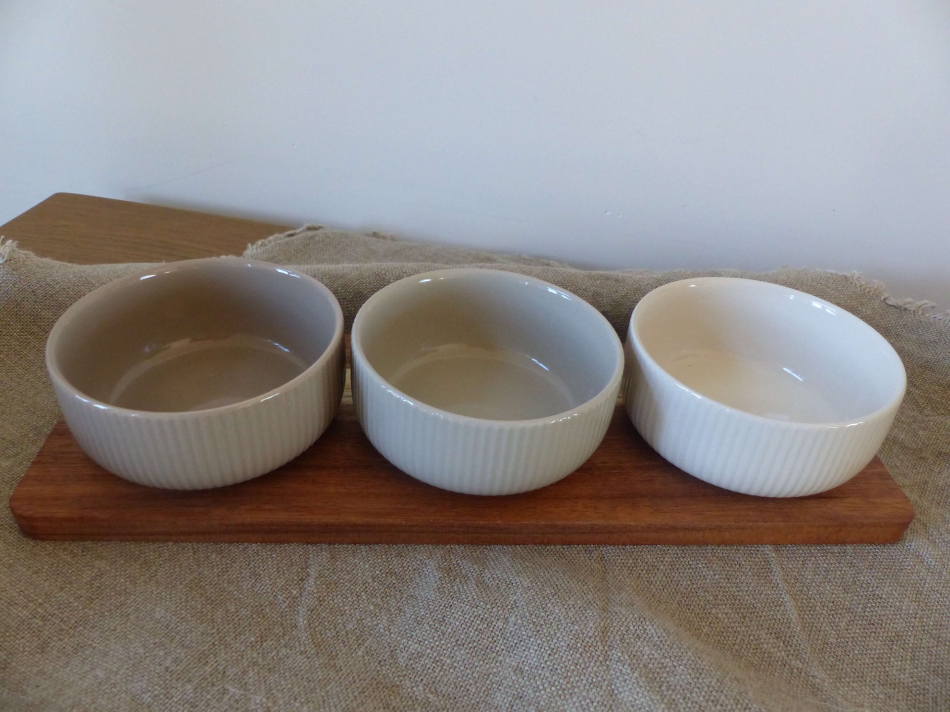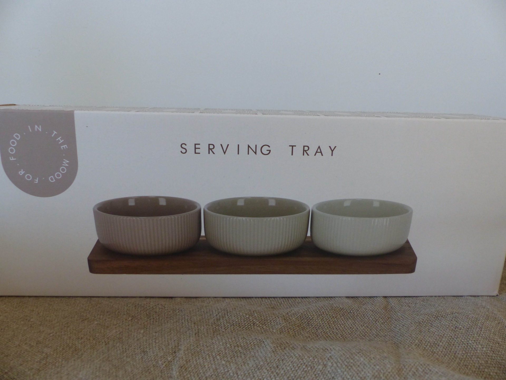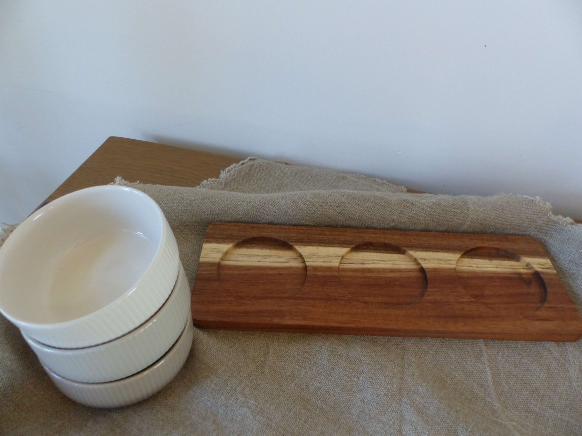 Dit serveerplankje mag niet ontbreken bij gezellige avonden. De serveerplank is gemaakt van acaciahout en de schaaltjes van keramiek. Door de inkepingen in de serveerplank blijven de schaaltjes mooi op hun plaats staan. De natuurlijke tinten zorgen ervoor dat deze set past bij ieders servies. Het houten plankje is niet vaatwasser bestendig.