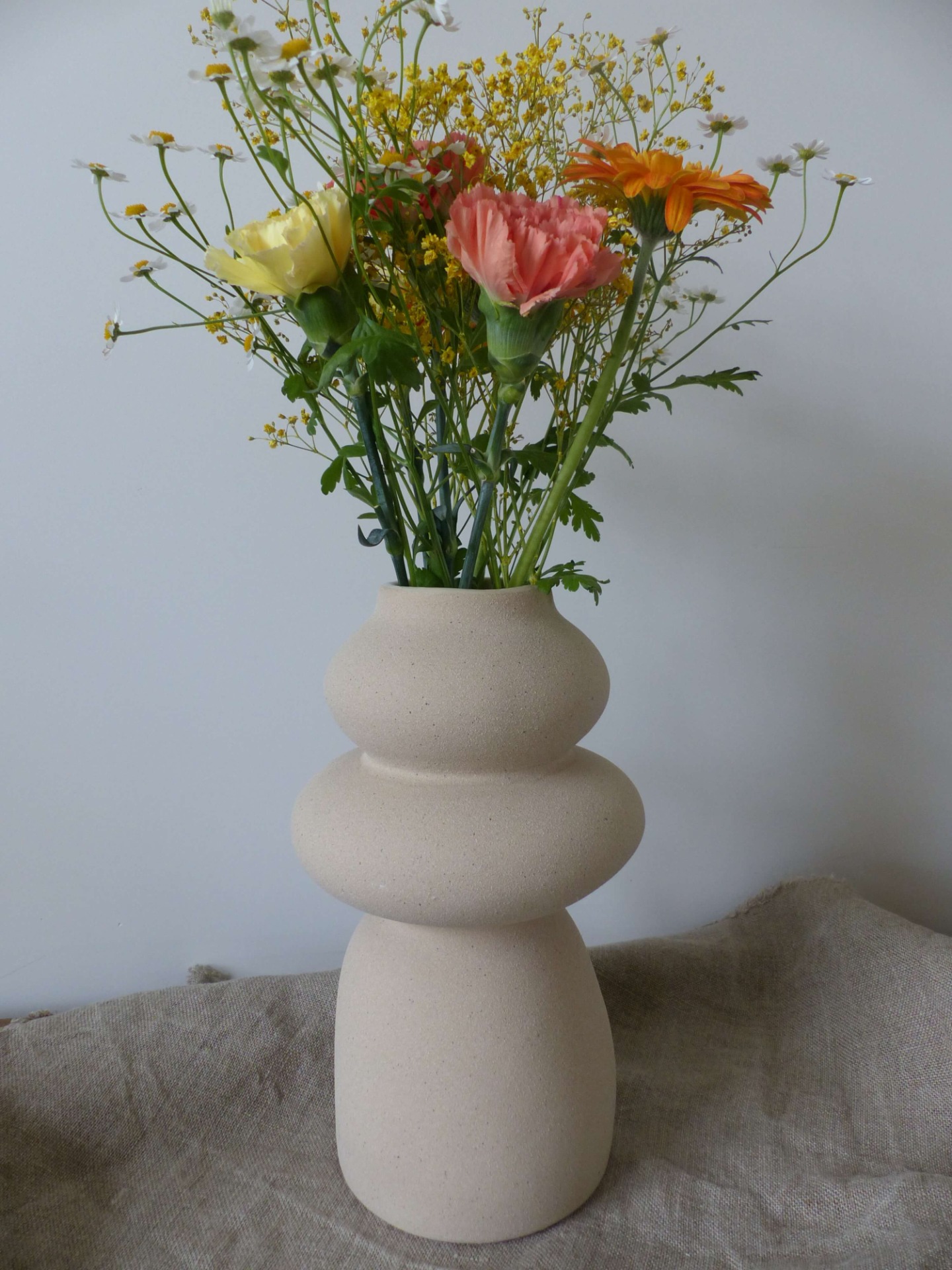 Vaas in keramiek met speelse vormen. Leuk in combinatie met de fotokaders in keramiek.